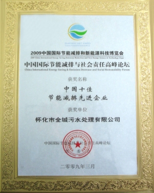 2009年3月在胡錦濤、溫家寶等中央領導出席的中國國際節能減排與新能源科技博覽會和高峰論壇上評為“中國十佳節能減排先進企業”。